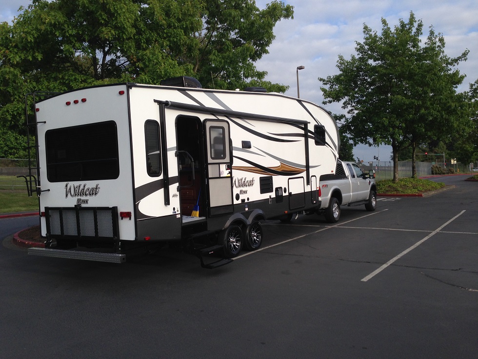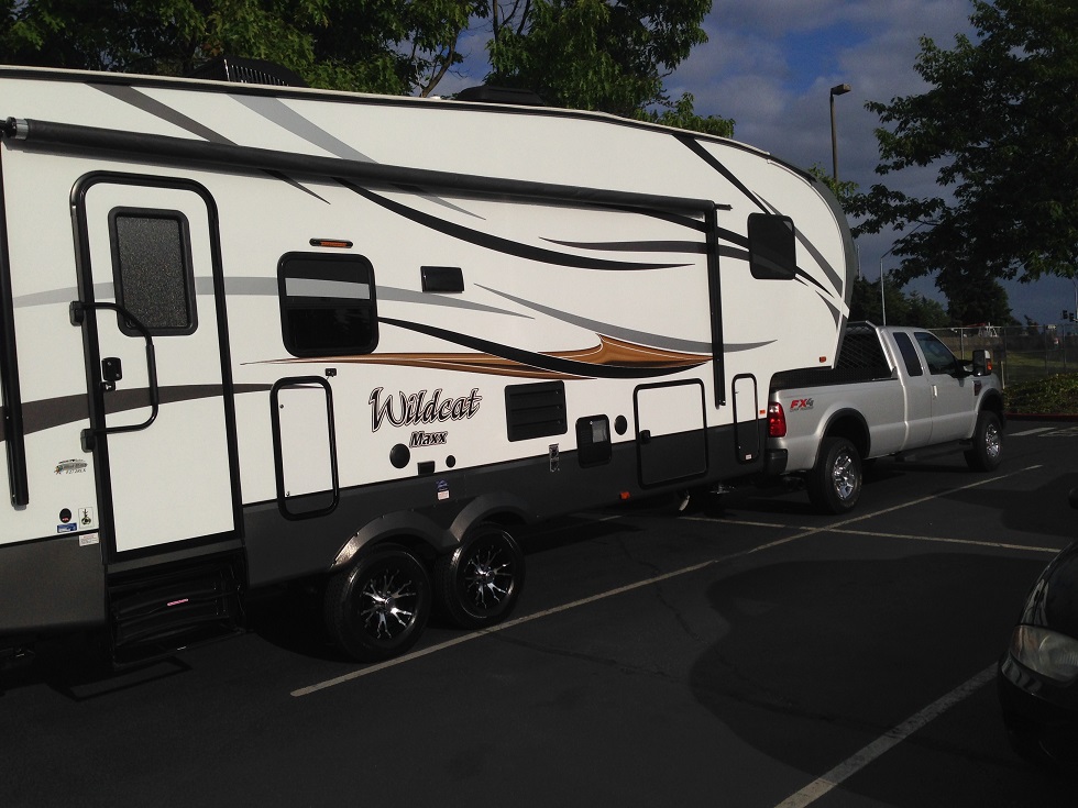 Well we just took delivery of our new (2014) Forest River Wildcat Maxx 272RLX 5th wheel here are some pictures taken at the parking lot on or way home.